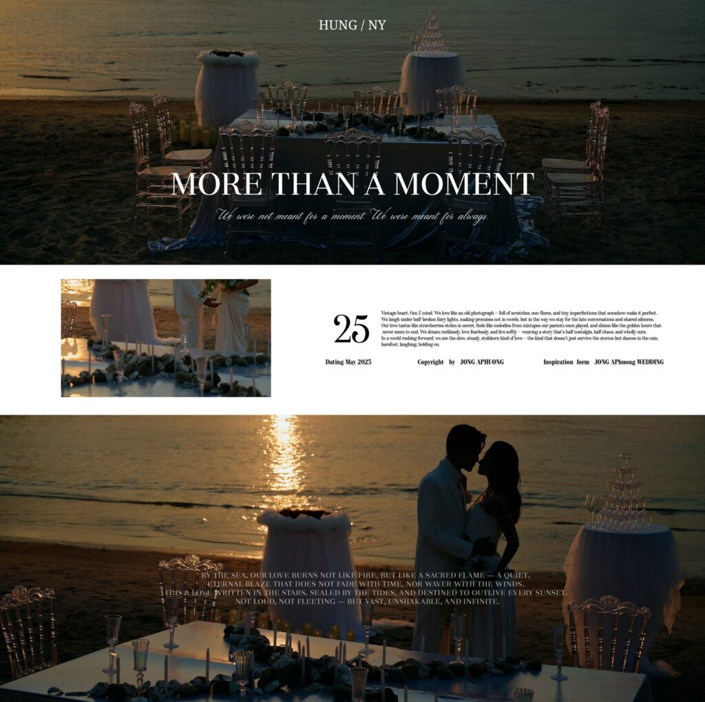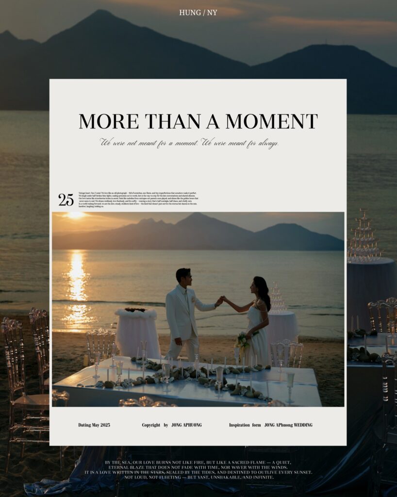 Khi nói đến ảnh cưới, biển luôn là bối cảnh mang đến cảm giác tự do, nhẹ nhàng, và đầy cảm xúc. Bầu trời trong xanh, sóng vỗ rì rào, nắng vàng óng ánh, tất cả tạo nên khung cảnh tuyệt vời để kể lại câu chuyện tình yêu của bạn. Tại Jong APhuong Wedding, […]